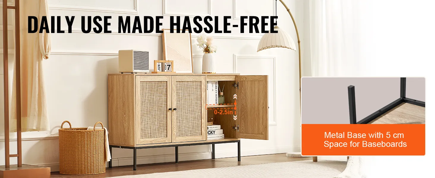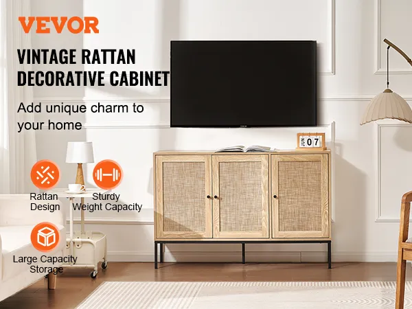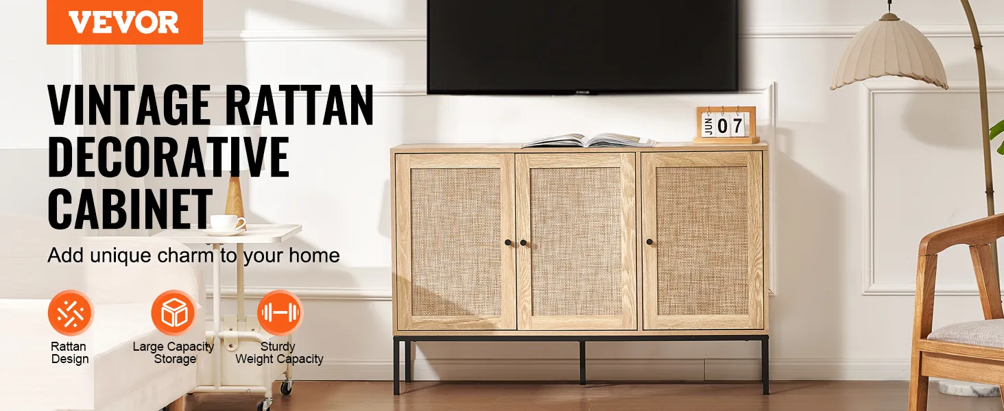VEVOR Rattan Cabinet Storage with 3 Magnetic Doors & Adjustable Shelves Natural