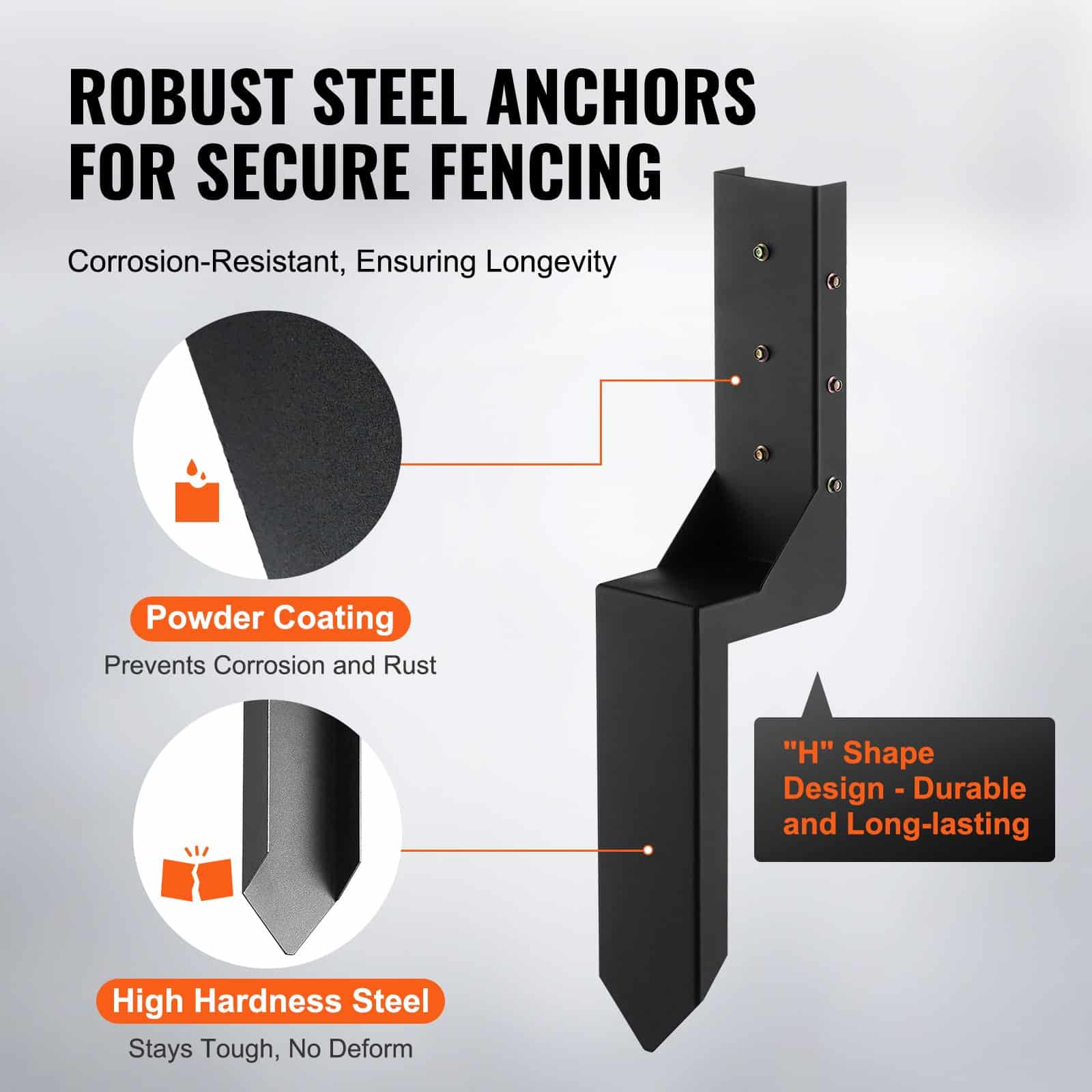 VEVOR Smagā Tērauda Žoga Stabu Enkuru Remonta Komplekts, 4 Gab. - Piemērots 8.9 x 8.9 cm (3.5 x 3.5 collu) Koka Stabiem, 61 cm Enkurs Remontam Sagrieztiem vai Salauztiem Koka Žogiem, Korozijas Izturīgs