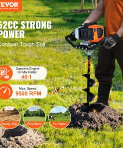 VEVOR 52cc 1450W benzīna zemes urbējs ar 150 mm un 250 mm urbjiem un 3 pagarinājumiem – smags darbs