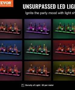 VEVOR 102cm 2-pakāpju LED alkohola pudeļu plaukts ar RF un lietotnes vadību mājai un bāram
