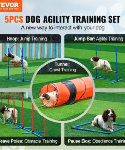 VEVOR 5-daļīgs suņu veiklības treniņu komplekts ar 3m tuneli, barjerām, lēkšanas apli un piederumiem