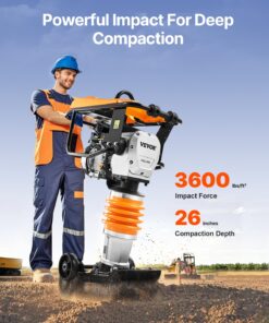 VEVOR 6.5 HP Jumping Jack Compactor, 196cc Fuel-Powered Rammer, 1633 kg Impact Force, 66 cm Depth, for Soil & Foundation Work