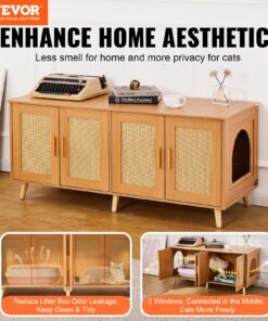 VEVOR Wooden Cat Litter Box Enclosure with 2 Rooms, Hidden Furniture Cabinet, Black, 120x50x55cm