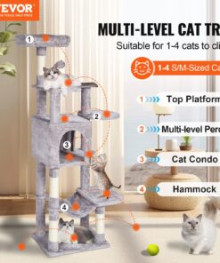 VEVOR 174 cm daudzlīmeņu kaķu tornis ar mājiņām, šūpuļiem un skrāpēšanas stabiem iekštelpu kaķiem