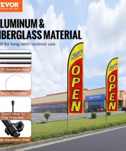 VEVOR 5m Āra Reklāmas Karogu Komplekts ar Stabiem – Izturīgi Divpusēji OPEN Karogi Uzņēmumiem