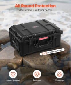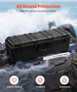 VEVOR 70л водонепроницаемый жёсткий кейс на колёсах, IP67 защита, поролоновая вставка, замки, чёрный