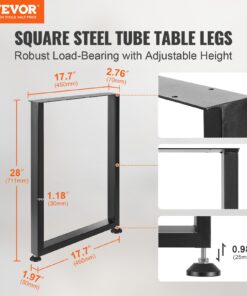 VEVOR 711мм регулируемые стальные ножки для мебели, набор из 2 шт, прочные ножки для стола, макс. нагрузка 453кг, черные, быстрая установка