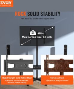 Мобильная ТВ стойка VEVOR с колесами, регулируемая высота, полка и наклон, для ТВ 58–152 см, до 40 кг, универсальная