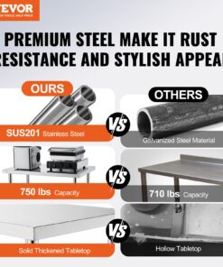 Рабочий стол VEVOR из нержавеющей стали 61x91x96см, 3 уровня высоты, 4 колеса, прочный стол для коммерческой кухни