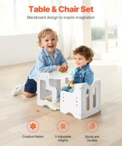 VEVOR 3-в-1 Монтессори деревянный стол и стул для детей с доской, регулируемая высота, для возраста 1–5 лет – Белый