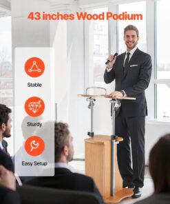 VEVOR Деревянная Трибуна 1100 мм, Регулируемая Высота, Колеса, Полка и Наклонная Поверхность для Презентаций