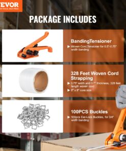 VEVOR 3-в-1 инструмент для стальной ленты 13–19 мм – ручной натяжитель, опрессовщик и резак