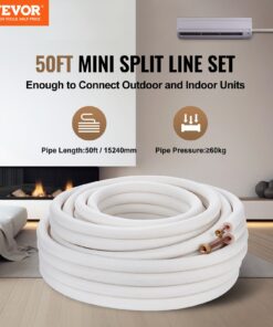 VEVOR 15240mm (50FT) Mini Split Line Set with 6.4mm (1/4”) & 12.7mm (1/2”) O.D Copper PipesTriple-Layer Insulation for 12000-18000 BTU Air Conditioning & HVAC Systems