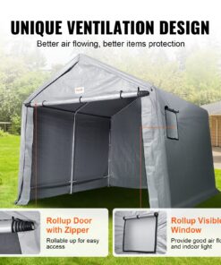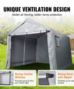VEVOR Переносной Уличный Навес-Склад 2.44 x 4.27 x 2.32 м с Молнией, Стальной Каркас и PE Покрытие
