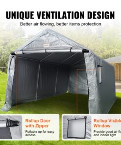 VEVOR Переносной Хозяйственный Навес 305x457x244 см с Молнией – Стальной Каркас, 240G PE Тент