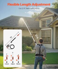 VEVOR телескопическая насадка для мойки под давлением 7,3 м, 276 бар, с насадками, очистителем желобов, щеткой, соединителем и ремнем