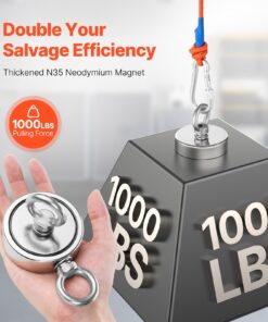 VEVOR 454кг Сильный Неодимовый Магнит для Рыбалки – Мощный Магнит для Поиска Металла Под Водой