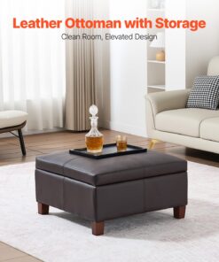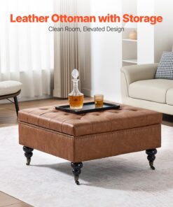 VEVOE Пуфик-Журнальный Стол 87,5 см с Хранением, Льняная Обивка, Деревянный Каркас, Молочный