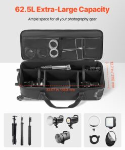 VEVOR катящаяся сумка для камеры 100x38x32 см – водонепроницаемый кейс для студийного оборудования с объемом 90,7 л и регулируемыми перегородками
