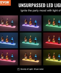 VEVOR светодиодная полка для бутылок, 1-уровневая настенная акриловая барная стойка 61 см с пультом и приложением