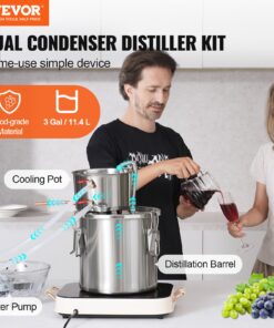 VEVOR 50L Stainless Steel Alcohol Distiller Kit with Copper Coil, Dual Condenser & Thumper for Whisky, Brandy, Vodka