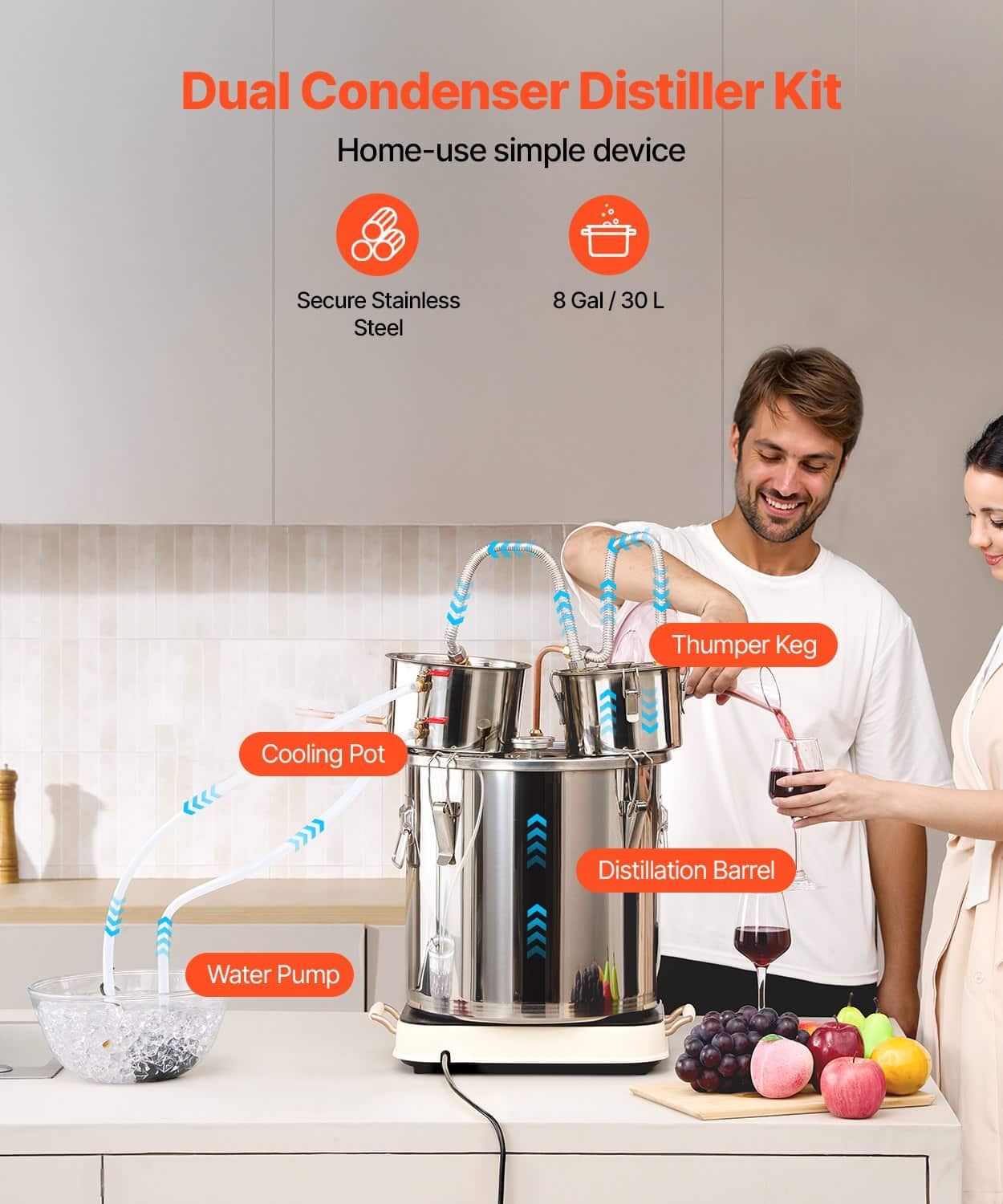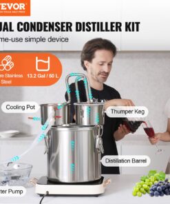 VEVOR 50L Stainless Steel Alcohol Distiller Kit with Thermometer & Fermentation Tank – Home Whiskey Moonshine Still