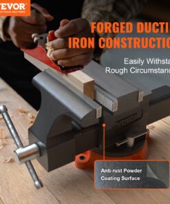 VEVOR 16.7 cm Heavy Duty Bench Vise with 360° Swivel Base, Anvil, 23.5 cm Jaw Opening, Ductile Iron, for Drilling & Pipe Work