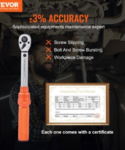 Набор динамометрических ключей VEVOR 1/4 дюйма, 2.3–27.1 Н·м, двухсторонний, точность ±3%, с насадками, головками и кейсом, оранжевый
