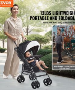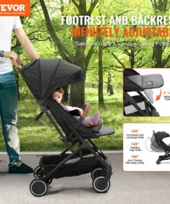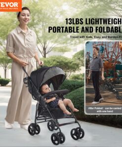 VEVOR Lightweight Travel Baby Stroller, Foldable Carbon Steel Frame, Adjustable Backrest & Canopy, 15kg Capacity, Gray/Black