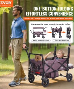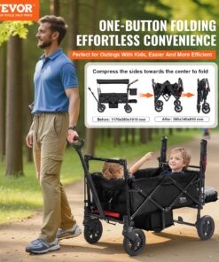 VEVOR 4-Seater Collapsible Wagon Stroller with Canopy, Push/Pull Handle, Safety Harness, 150kg Load, Dark Gray & Black