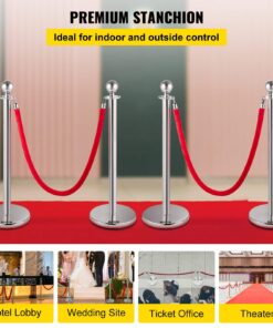 VEVOR Silver Crowd Control Stanchions with 1.5m Red Velvet Rope – Retractable Queue Barrier Posts for Events & Venues