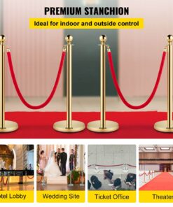 VEVOR Набор из 2 золотых стоек с красной бархатной верёвкой 1,5 м – барьер для контроля толпы на мероприятиях, в отелях, театрах