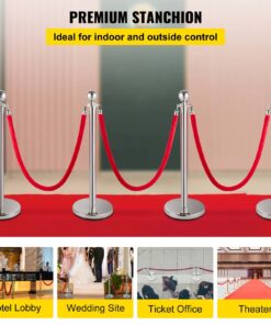 VEVOR комплект из 4 серебристых стоек с красной бархатной верёвкой 1,5 м – барьеры для контроля очередей и толпы