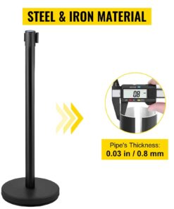 VEVOR комплект из 6 стоек для контроля толпы с 2 м втягивающимися лентами, черные барьерные стойки с бетонным основанием для улицы и помещений