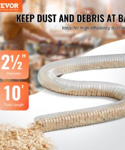 VEVOR 64mm x 3m Clear PVC Dust Collection Hose with Steel Coil & 4 Clamps – Flexible, Puncture-Resistant for Woodworking Tools