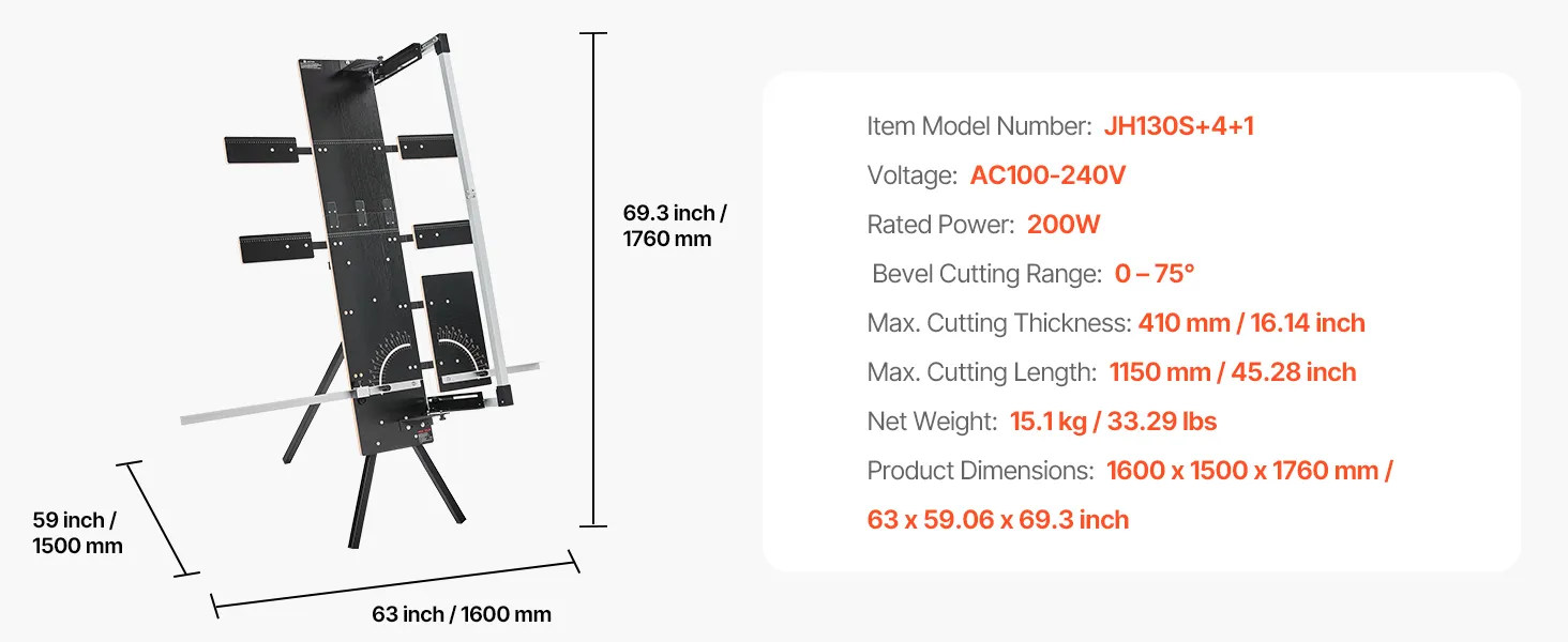 The three-leg stand provides a sturdy foundation, reducing wobble during use and ensuring safer, more accurate cuts.