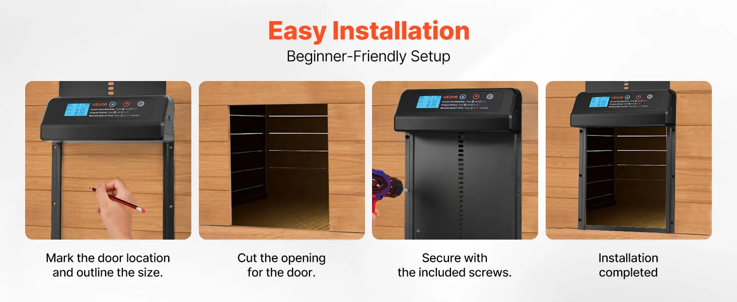 Install in just four steps without special tools or skills. Get your coop door running in minutes.