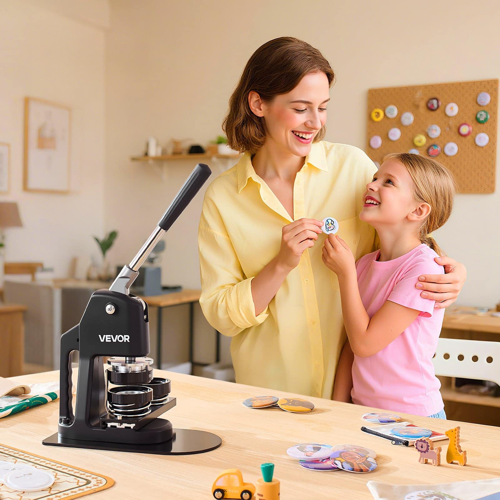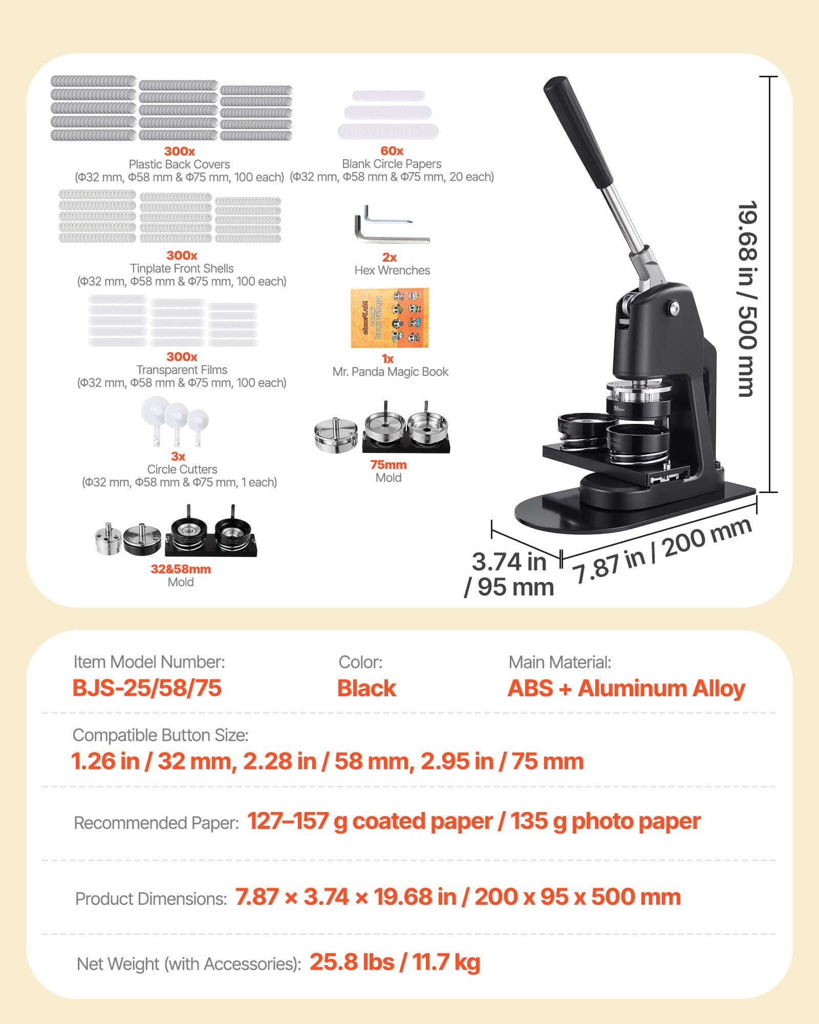 Машина для изготовления кнопок VEVOR, 32/58/75 мм 3-в-1, пластиковый штифтовый станок с деталями кнопок 300 шт., круглый резак и волшебная книга, усиленная эргономичная ручка для значков своими руками, персонализированные штифты, черный