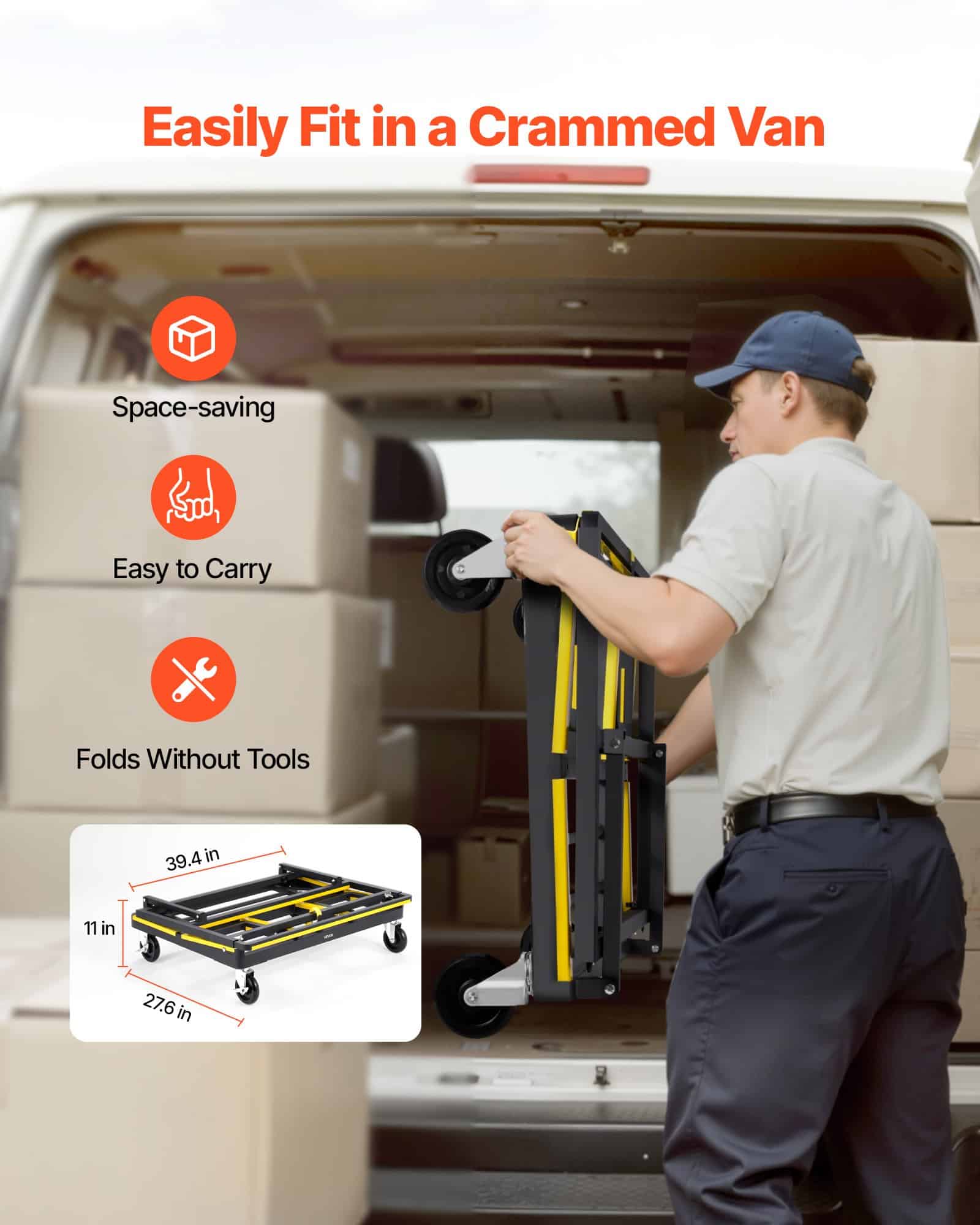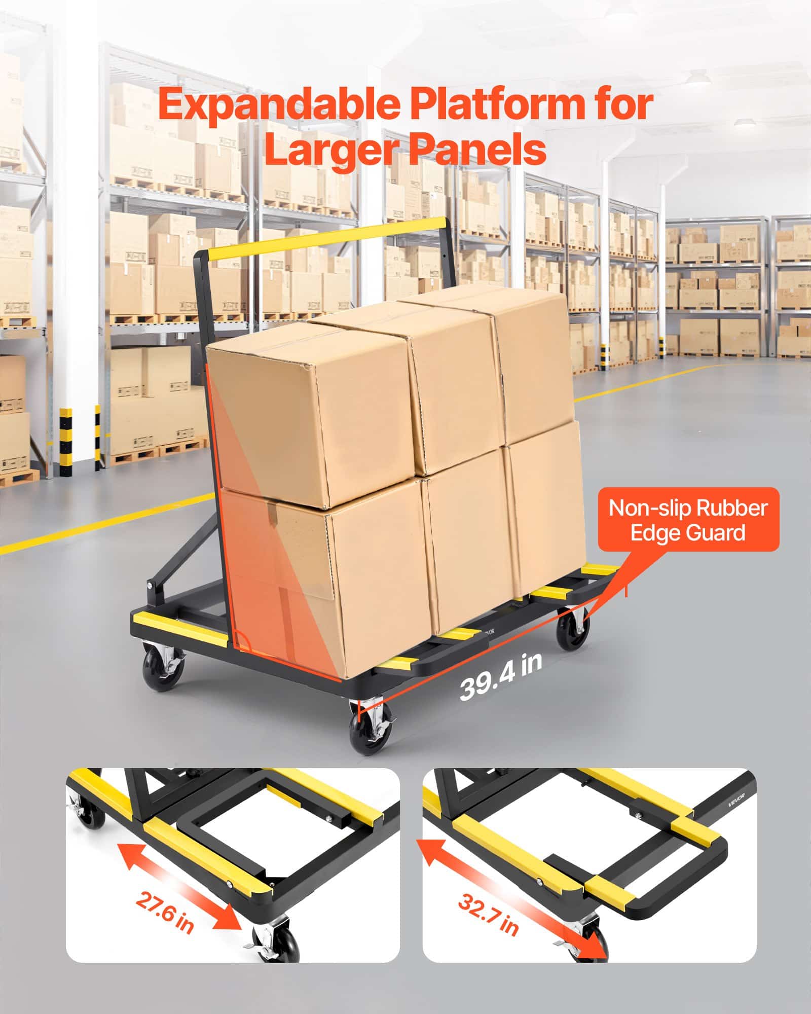 Ширина платформы простирается от 27,6 до 32,7 дюймов за счет перелистывания боковых расширений для больших панелей и громоздких предметов.