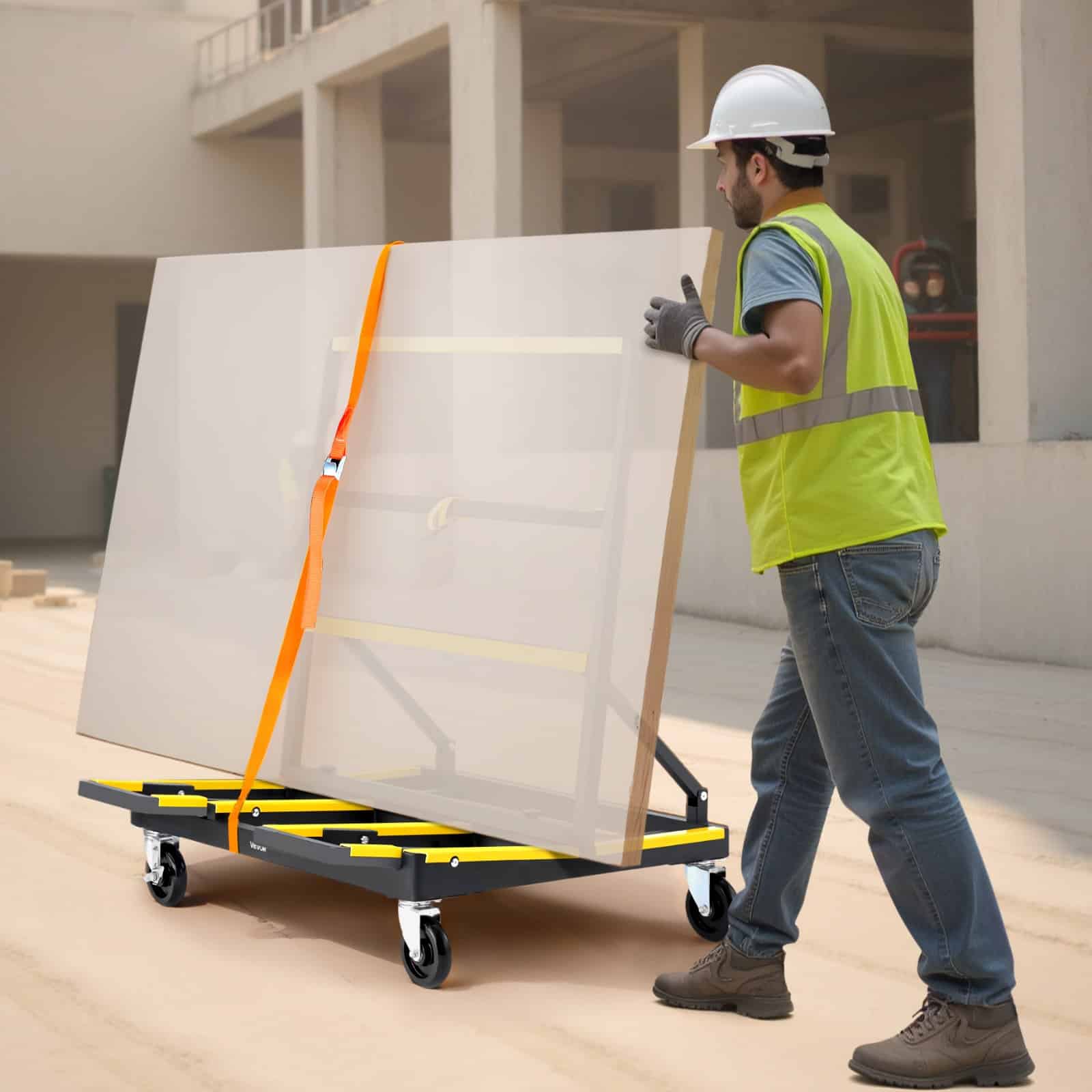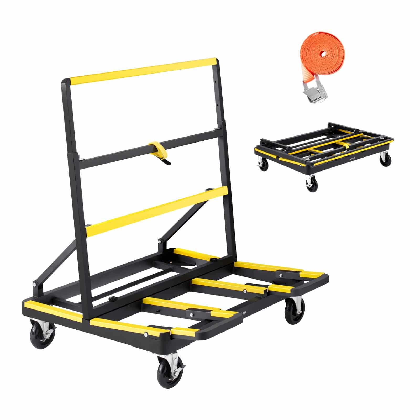 Тележка для гипсокартона VEVOR Dolly, грузоподъемность 816 кг, стальная панельная куколка с 4 поворотными роликами и расширяемой палубой, складная панельная тележка для грузовика с завязанным ремнем для обработки фанеры, гипсокартона, стекла