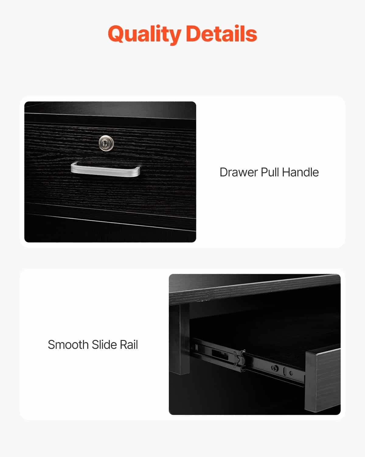• Гладкие выдвижные ящики: этот стол для приема имеет высококачественные металлические направляющие, обеспечивающие плавный открытие и закрытие ящиков с минимальным шумом. Этот дизайн добавляет дополнительное пространство для хранения и повышает комфорт и простоту использования во время повседневных задач.