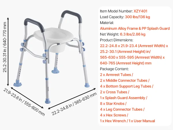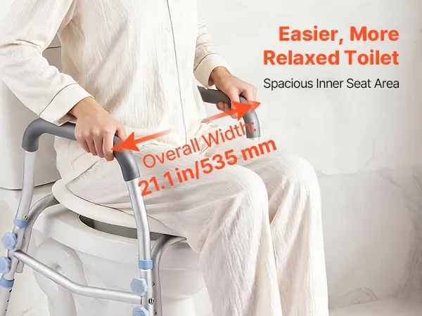With a 21.06 in (535 mm) armrest width, this toilet riser provides ample space for comfortable sitting and standing. Enjoy freedom of movement without being cramped.