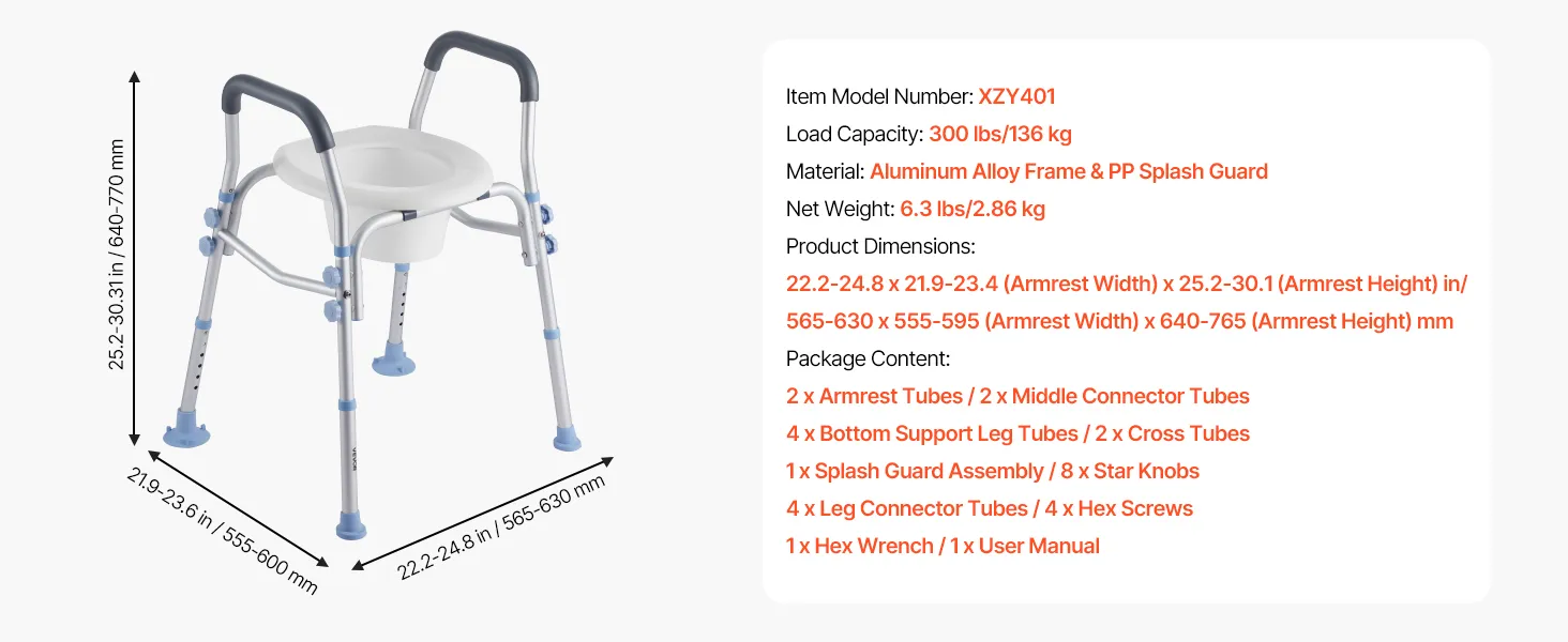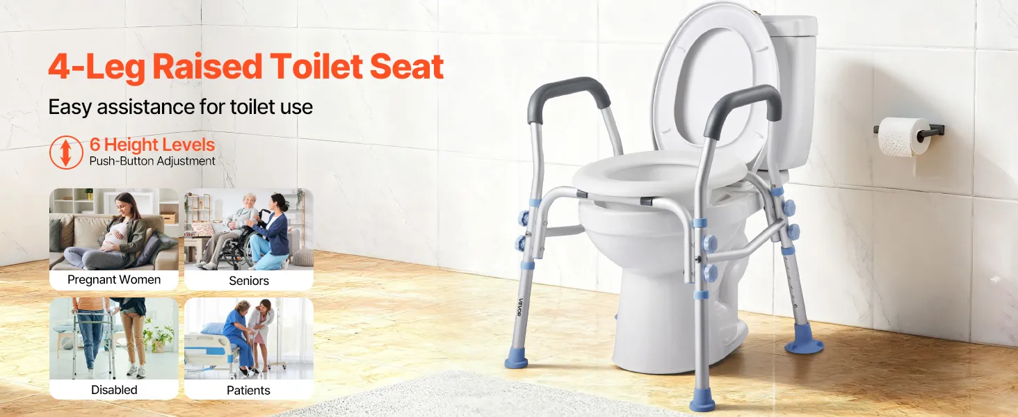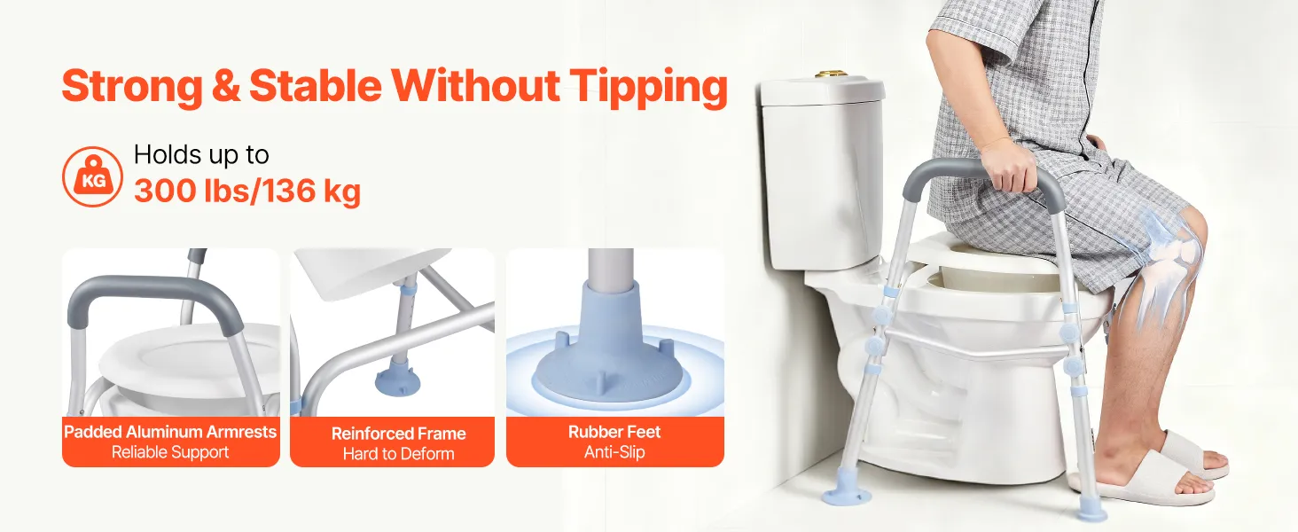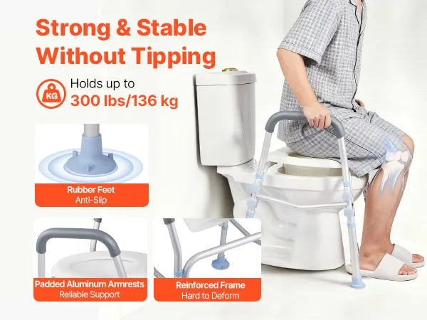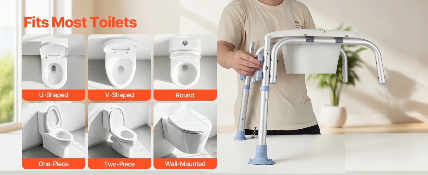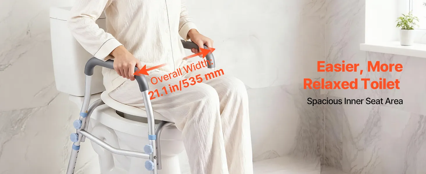 Constructed from quality aluminum, this handicap toilet seat provides exceptional strength and long-lasting durability. Its sturdy structure provides reliable support for users of various body types and weights, ensuring a comfortable experience.