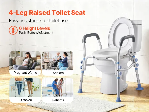 Equipped with a push-button design, our raised toilet seat allows easy height adjustment to fit various toilet sizes. Provides comfort and stability for pregnant women, seniors, patients, and the disabled, helping reduce knee and joint strain during use.