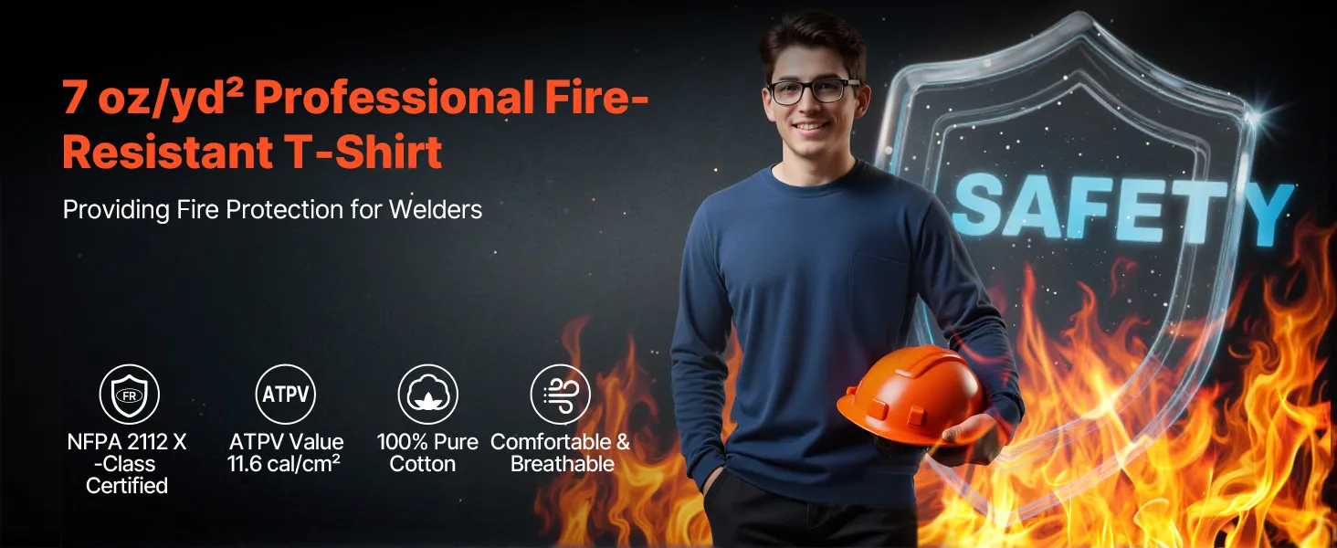 This T-shirt is made of 7 oz/yd² pure cotton and offers outstanding flame resistance with an ATPV rating of 11.6 cal/cm², ensuring safety in extreme conditions. Ideal for high-risk environments such as metal workshops, construction sites, industrial facilities, and power distribution rooms.