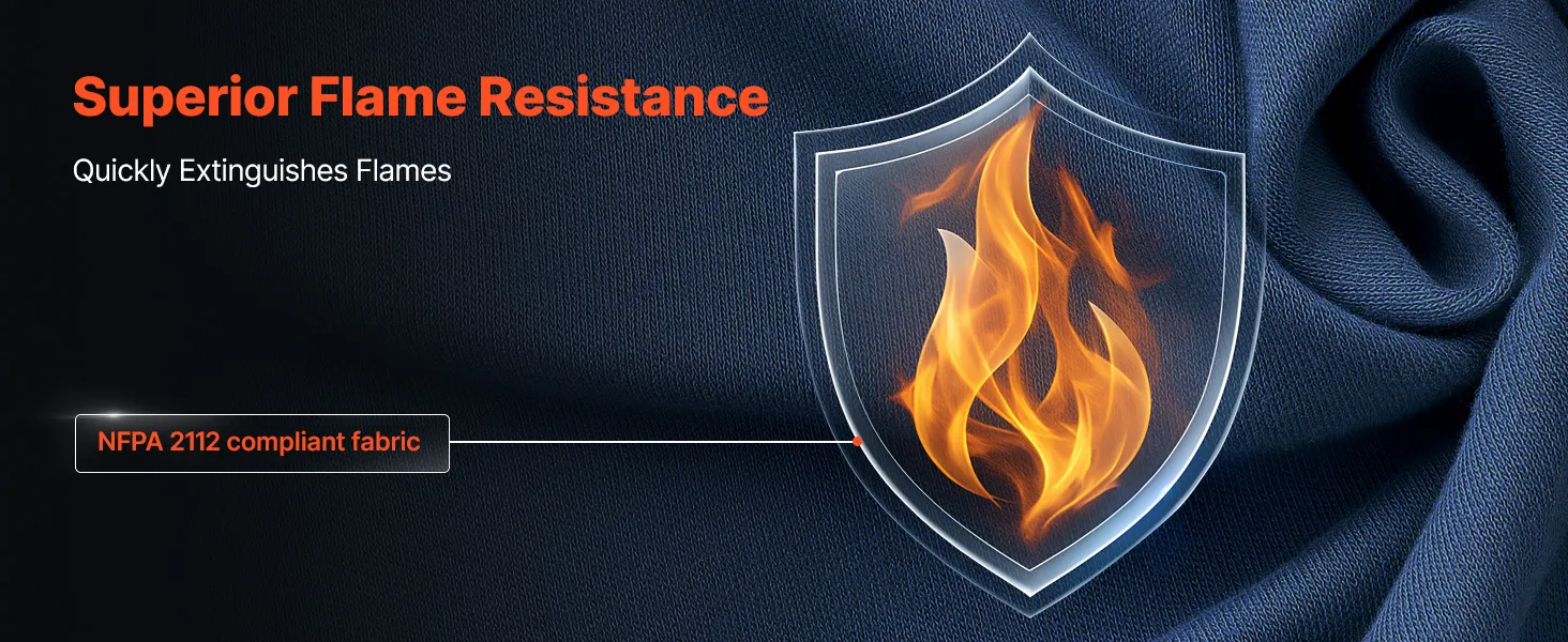 The flame-resistant fabric slows down ignition and self-extinguishes once away from the fire source. It helps avoid flame spread, significantly reducing the risk of burns from sparks, arcs, and high-heat exposure.