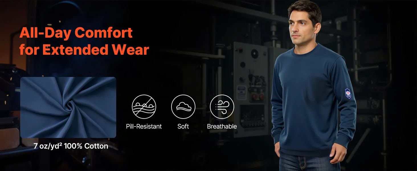 The classic crew neck offers a non-restrictive fit around the neck. A chest pocket provides quick access to ID badges, pens, or small tools. Flame-resistant labeling ensures industry compliance, while the clean cuff design avoids sagging.