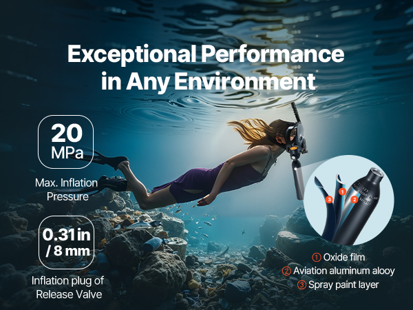 Изготовленный из авиационного алюминиевого сплава, этот баллон для подводного плавания устойчив к высокому давлению и коррозии, придавая вам уверенности во время каждого погружения в различных подводных условиях.