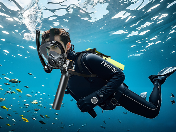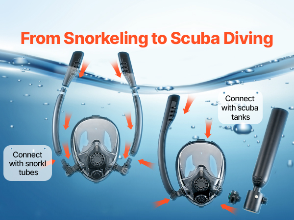 Благодаря сменным маскам и мундштуку для подводного плавания, наш портативный баллон для подводного плавания с аквалангом легко меняет конфигурацию для подводного плавания или дайвинга. Он разработан с учетом особенностей вашего приключения.