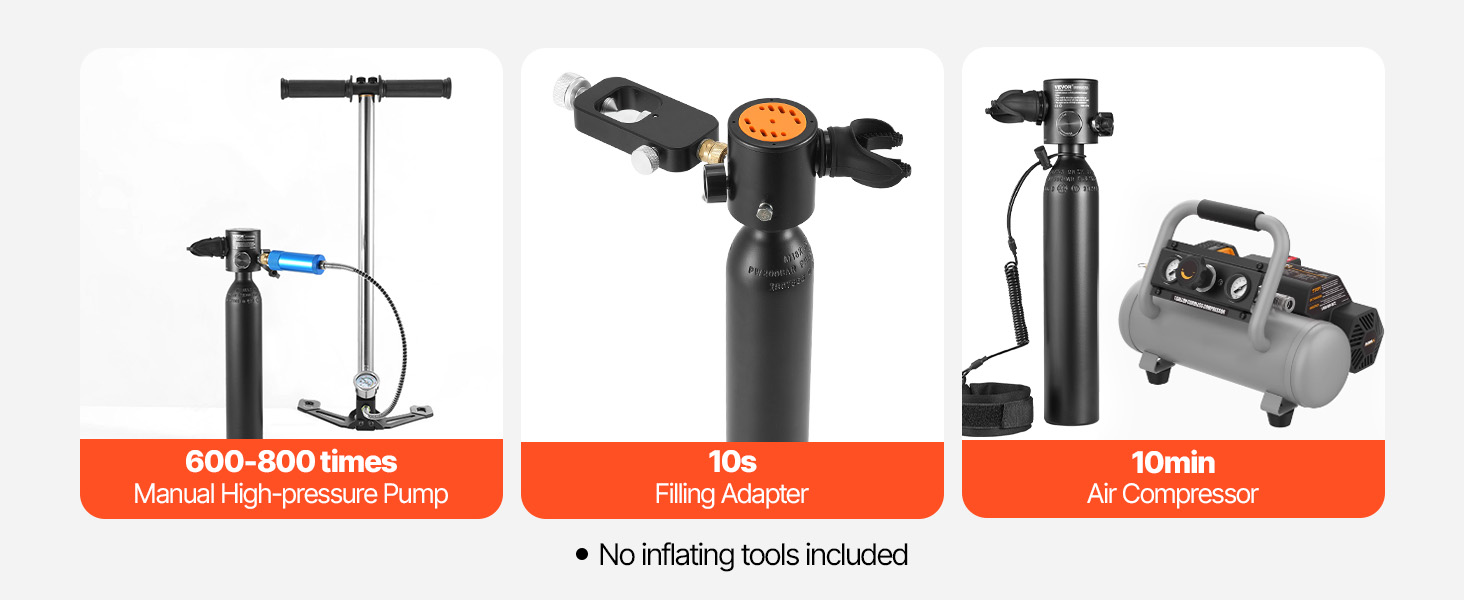 VEVOR Scuba Tank, 0.5L Portable Scuba Diving Tank, Diving Oxygen Cylinder Supports 5-10 Minutes Underwater Breathing, 98.43 feet Diving Depth, Lung Tank Kit for Underwater Exploration / Rescue